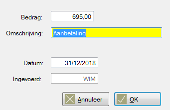 De knop 'Aanbetaling' (3), kleurt geel zolang er een openstaand bedrag is.