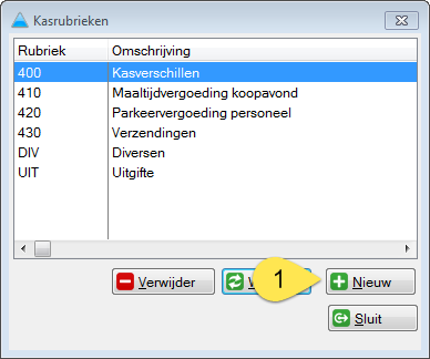 Menu: 'Stamgegevens' / 'Kasrubrieken'